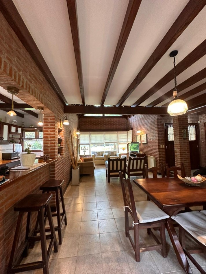 Dispone de 5 ambientes espaciosos, ideales para una familia o para quienes buscan una casa de veraneo cómoda. Su arquitectura combina solidez, estilo rústico y calidez, características muy buscadas en propiedades de la zona.