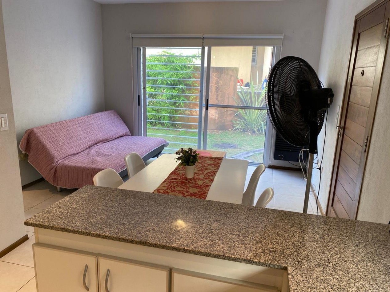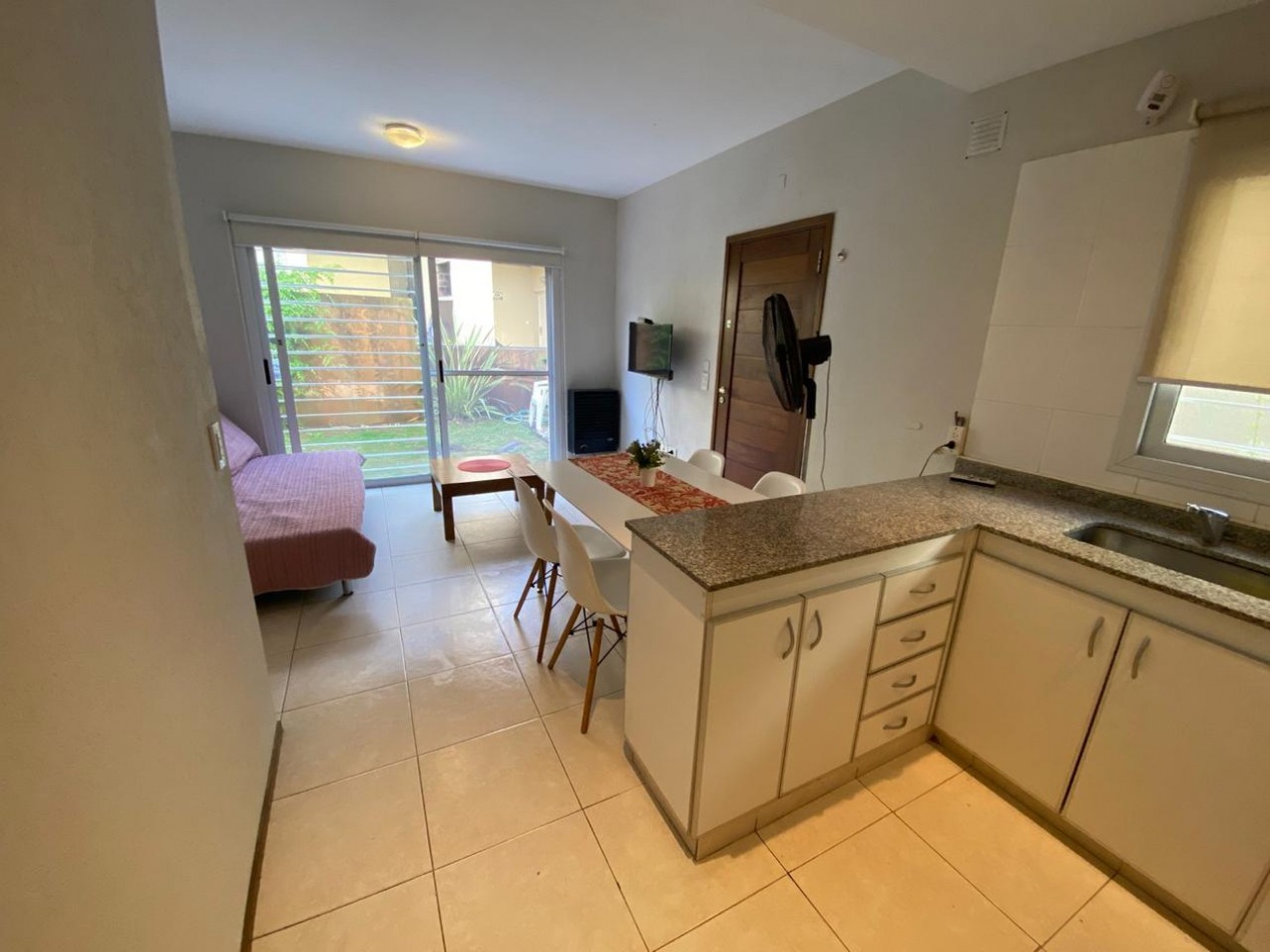 Se vende cómodo departamento de dos ambientes, ubicado en planta baja, dentro de un complejo cerrado que ofrece un entorno tranquilo y de baja circulación. La propiedad cuenta con living comedor, cocina integrada, un baño completo y un patio individual con parrilla, ideal para disfrutar al aire libre. Se vende amoblado, listo para habitar o rentar. Se encuentra en una zona muy buscada, a metros del colegio Tierra del Sur y a solo dos cuadras de la rotonda de Intermédanos y Bunge, con rápido acceso y cercanía a servicios y comercios. Ideal tanto para vivienda permanente como para inversión.
